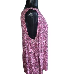 This stylish sleeveless V neck top features a vibrant red background with multi colored dotted pattern. Perfect for adding a pop of color to your wardrobe.