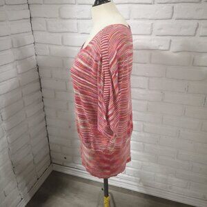 Lane Bryant Ladies Lightweight Short Sleeves Red & Green Stripe Sweater