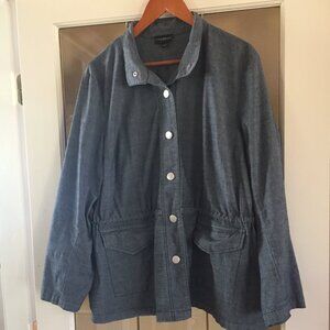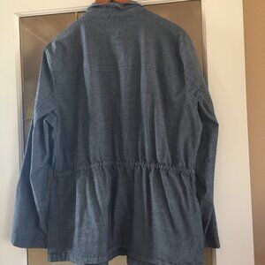 This jacket has snap closures, two front pockets and a drawstring waist.