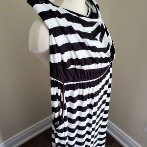 Black and white Striped maxi dress with full length skirt, Elastic waist, Side Pockets