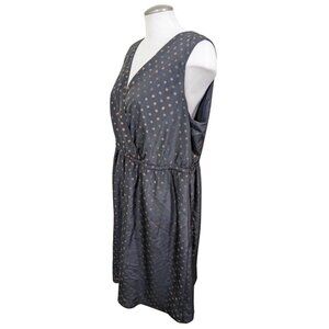 Lane Bryant Surplice Front Dress Plus 3X Black Gold Dots Sleeveless Lined Party