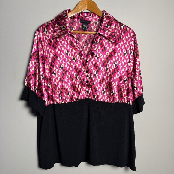 Lane Bryant Women's Geometric 1/2 Button V-Neck Short Sleeve Blouse Size 18/20