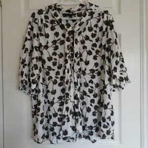 Lane Bryant Women's White Black Floral Tie Neck Blouse 22