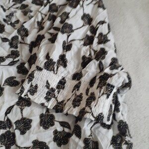 Lane Bryant women's size 22 popover top with a white base and black and tan floral print.