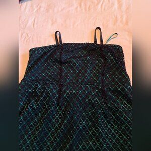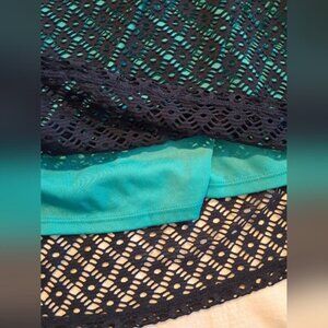 Lane Bryant slip dress women's size 18 black over teal, sleeveless mini, strappy, can be worn with or without the straps, has a couple of popped stitches on the elastic trim. overall VGUC, Lots of stretc