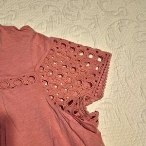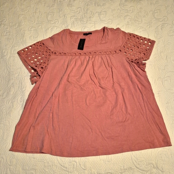 Lane Bryant women's size 22/24 medium pink lacy cut out sleeve shirt, NWT