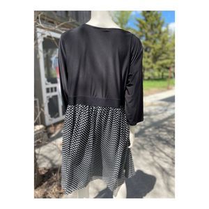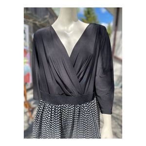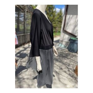 Size 22 on tag. Black Jersey knit Surplice bodice. Polkadot chiffon skirt. 3/4 length sleeves. No stains, holes or tears. Pet and smoke free home .