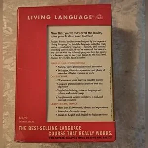 Enhance your Italian skills with the Language Italian course. This set includes 20 lessons on four compact discs, perfect for anyone looking to advance their language proficiency. The vibrant red packaging makes it a standout addition to your learning tools.