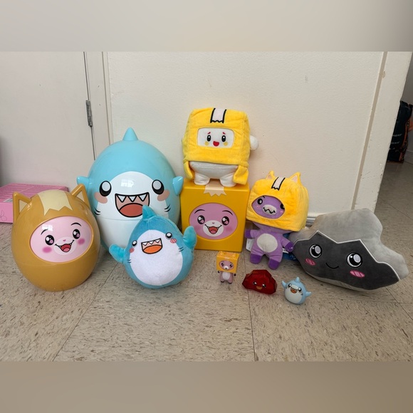 Delight your child with this adorable plush toy set featuring vibrant blue, yellow, and gray characters.