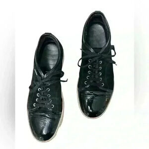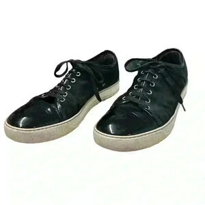 Lanvin Black Suede And Patent Leather Low Top Sneakers
