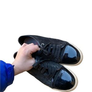Lanvin Black Suede and Patent Leather Sneakers Shoes Size 8
