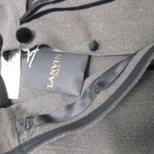 Add a touch of elegance to your wardrobe with this stunning Lanvin blazer jacket. Made in France, the jacket features a solid pattern and a single-breasted cut, with a six-button front button style. The jacket is perfect for any occasion, whether it's a party, cocktail event, or business meeting. Crafted from a blend of 58% cotton and 42% wool, the jacket is comfortable to wear and has a regular length. The jacket is lined with baize fabric and has long sleeves. The blazer is available in size 10, which is equivalent to a US size 42. The jacket is a must-have for any fashion-conscious woman and can be worn in summer, fall, or spring.