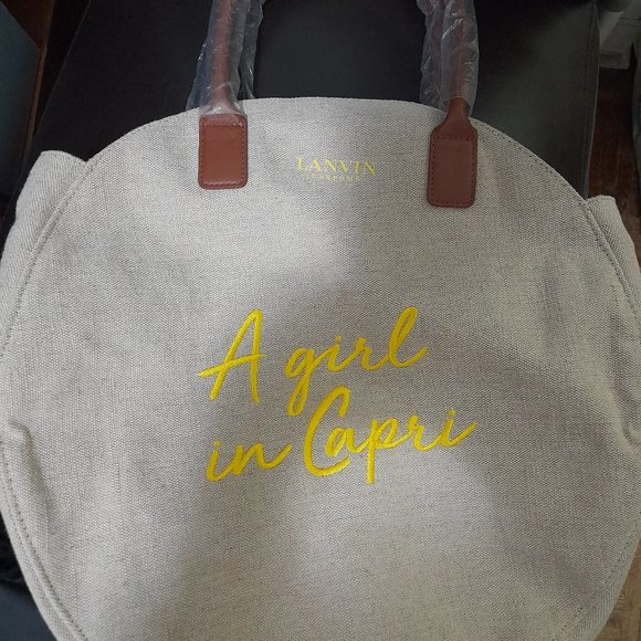 "Girl in Capri" embroidered on bag. Brand new, handles still wrapped in original packaging