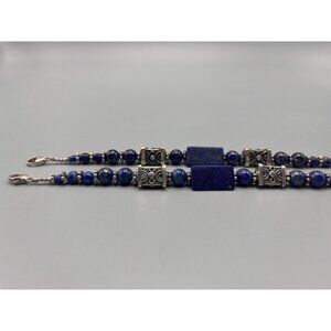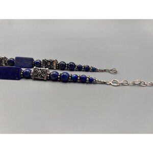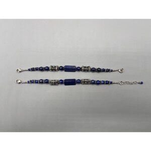 Lapis lazuli and sterling silver beaded bracelets, set of 2. No maker's mark, only marked 925. They are 7.5" long each, plus a 1.5" extender. Excellent condition.