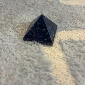 Elegant Lapis Lazuli pyramid with gold speckles. Perfect for desk decor.