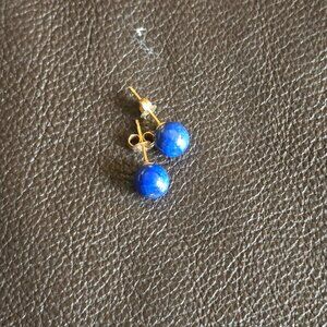 Lapiz Lazuli & 10K gold ball stud earrings, vintage.