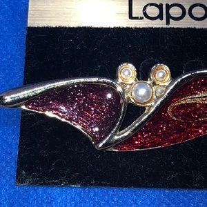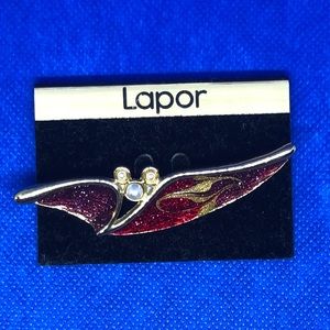Vintage Lapor pin glazed with metallic sparkle red, gold & purple.