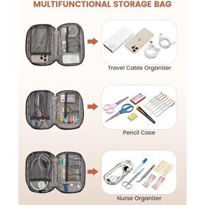 The laptop bag can hold so much stuff and still keep it organized. The added small bag is a nice size to put a few small things or even a laptop charger. The added pouch bag can be used as electronics organizer, college pouch bag, travel organizer or cosmetic organizer.