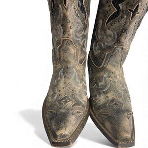 Laredo Leather Studded Western Cowgirl Snip Toe Boots Women's 10 M
