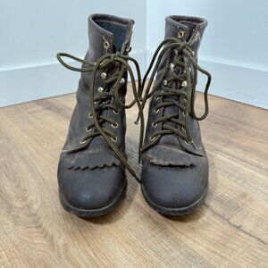 Laredo Leather Western Lace Up Boots Dark Brown Boho 8.5