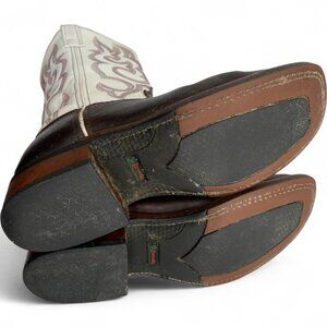 Laredo White Brown Square Toe Leather Western Cowboy Cowgirl Boots Women's 8 M
