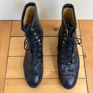 Laredo black leather roper-style lace-up boots. Women's US size 10M.