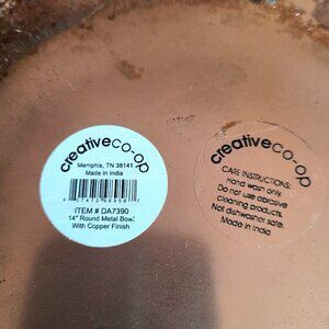 Large 14'' wide Creative Co-op Round Hammered Metal Bowl, Copper Finish