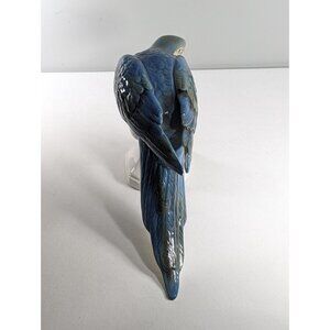 A wonderfully sculpted and hand painted porcelain figurine of a Blue Macaw Parrot - the pose is quite life like and the piece is in excellent condition without chips, breaks or repairs. The long tail touches the surface so please be thoughtful of where to put this piece. Marked underneath "ROYAL DUX Made in Czechoslovakia" 319 25X and "ROYAL DUX BOHEMIA D" in a raised triangle of pink clay. These markings date the piece anywhere between the late 1940s - early 2000s.