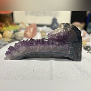 Beautiful amethyst geode with stunning purple hues. Perfect for home decor or spiritual spaces.