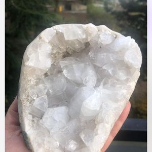 Beautiful Apophyllite crystal. This one has a nice weight to it and contains little caves. Just gorgeous and would make a beautiful gift π measures 6β x 5β and 2β height