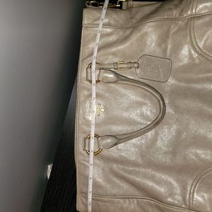 Condition: Some marks throughout on the outside and inside of the bag and a small part of the inside has a bit of ink from a pen. The inking on the handles has life left but has softened and has some dings. See pictures. This bag is in well loved Condition. Please feel free to ask me any questions if you have any.
