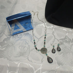 Large Black Nylon Avon Purse with Jewelry Earrings