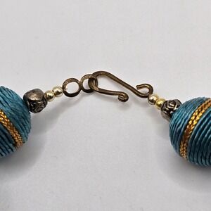 Large Blue Beaded Necklace and Clip On Earrings Statement Womens Jewelry
