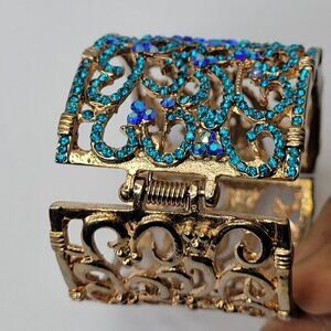 Large Blue Crystal Rhinestone Hinged Bracelet