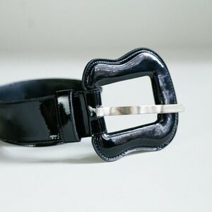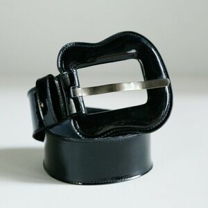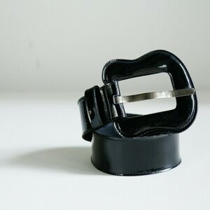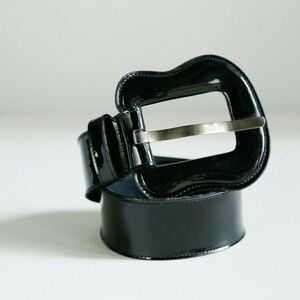Fantastic, patent leather belt with a huge , patent leather buckle. Very similar to the iconic Fendi belt from the early 2000's.