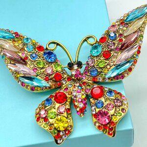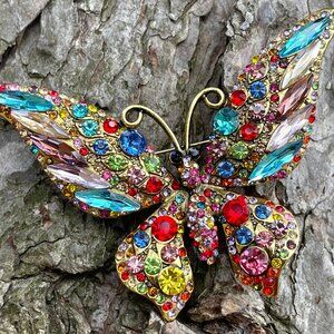 Large Butterfly Rhinestone Brooch Butterfly Brooch Multi Color Butterfly Pin