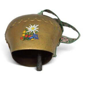 Large COW BELL with Floral Strap Austria Vintage 17cm