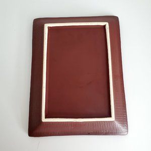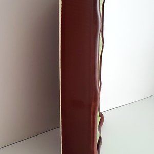 Large Ceramic Bamboo Trinket Dish Faux Wood Trim Green Mesh Imprint MCM Design
