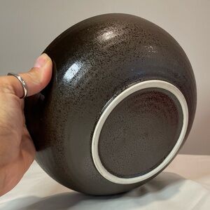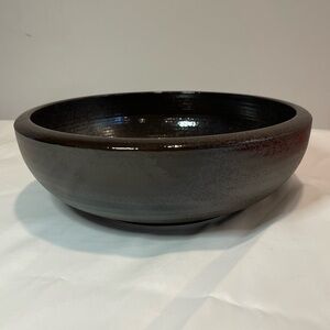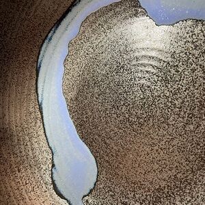 Beautiful large ceramic bowl Roughly 9.25”w x 3”h Blue swirl has some iridescence Not sure of age In excellent used condition No chips or cracks