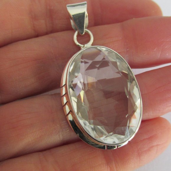 Beautiful Large Clear Quartz Pendant made with 925 Sterling Silver.