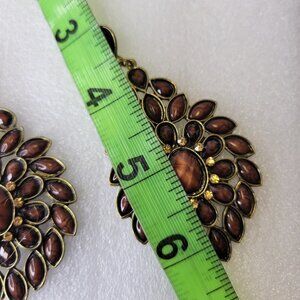 Large Dark Brown Floral Motif Earrings