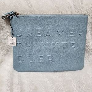 NWT! This is a large embossed pouch with the words: Dreamer, thinker, doer. From Indigo. Can be used as a pouch in your purse. Big enough to fit your phone. Zippered closure with tassel. Inside has a key ring.