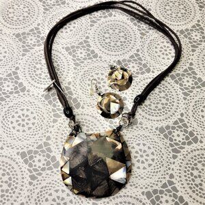 Philippines Shell with Mother of Pearl inspired Pendant Necklace with Earrings