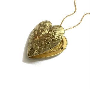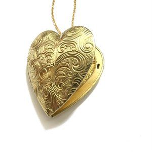 Large Floral Etched Heart Locket Necklace
