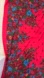Featuring a bold red background with colorful floral patterns in green, blue, and yellow, this scarf is the perfect statement accessory.