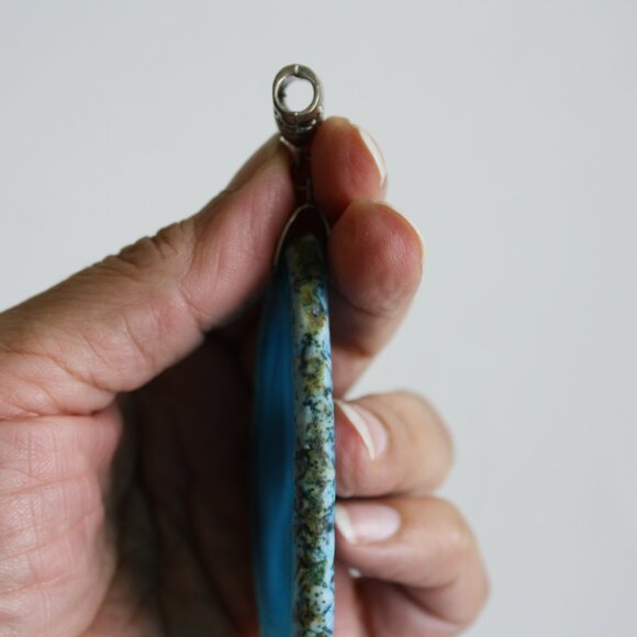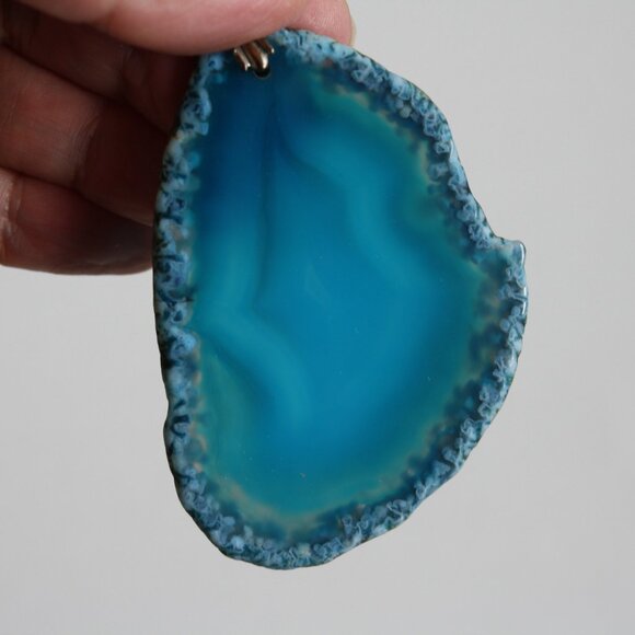 Large Geode Slice Pendant blue Agate semi transparent large veil stone j…