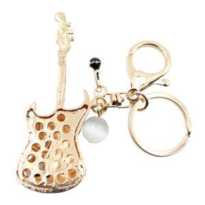 Large Guitar Gold-tone Lobster Clasp Keyring Keychain Bag Accessory