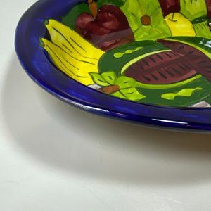 Large Hand Painted Oval Ceramic Deep Bowl Mexico Watermelon Fruits