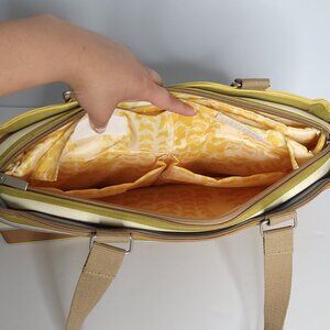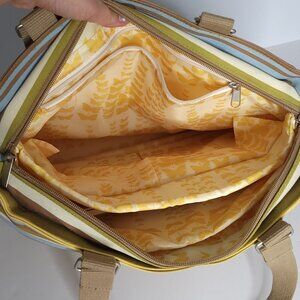 Large Laptop Bag Triple Compartment Multicoloured Neutral Stripes