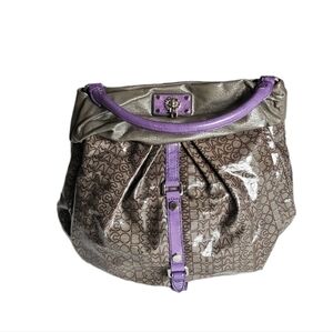 Large Marc Jacobs monograph puttering magnetic closure silver hardware.